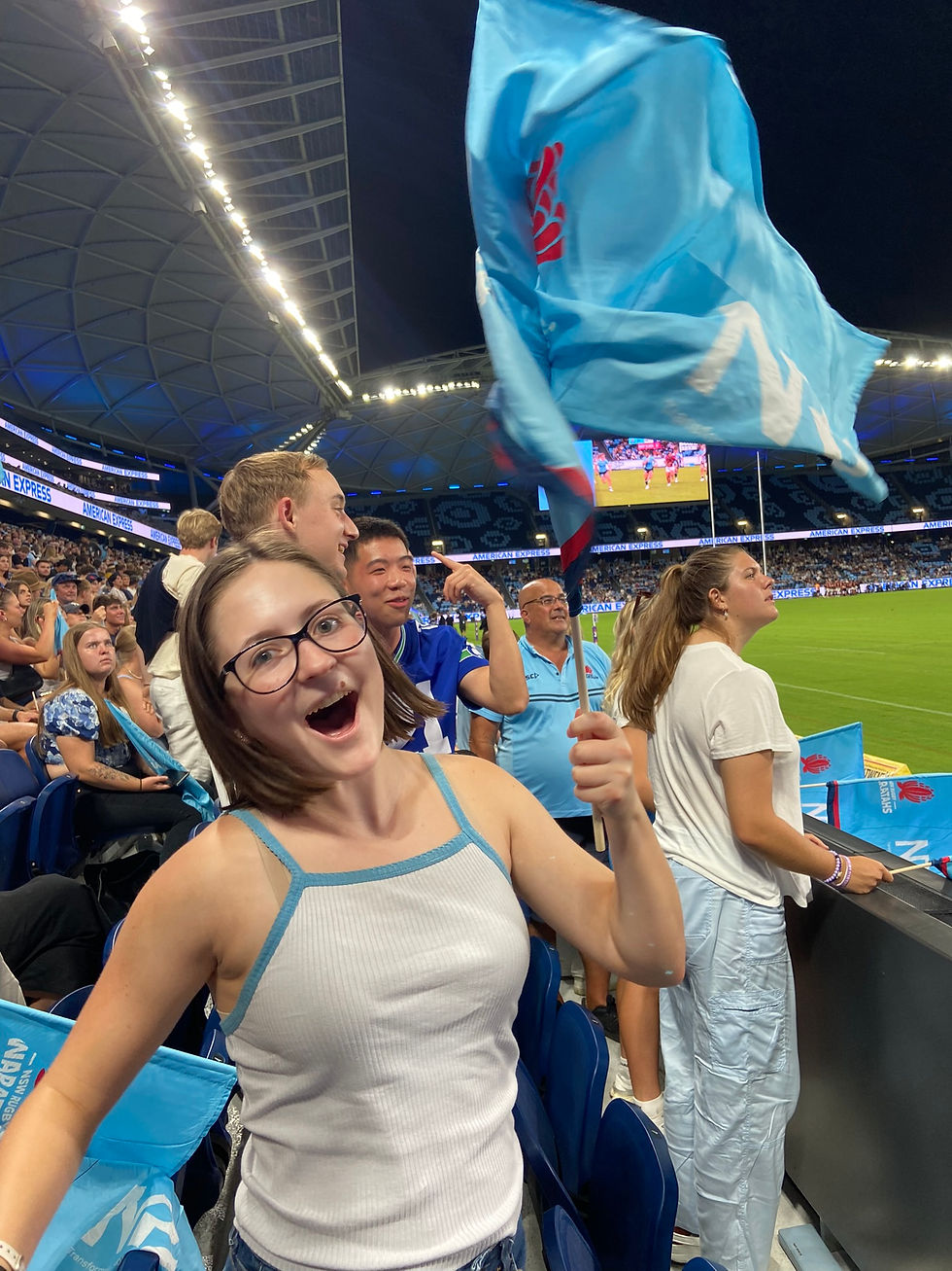 This game was the New South Wales Waratahs versus the Otago Highlanders (a team from New Zealand). The Waratahs lost, but I got to see several "tries" scored, and several scrums! Yay rugby! Plus they gave me a free flag.