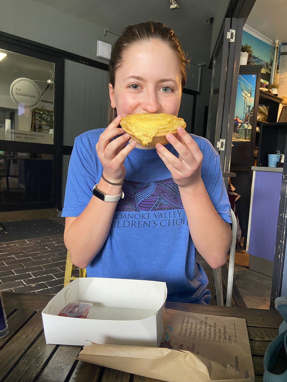 On Saturday, we ventured all the way to Barrenjoey Headland, about a 2 hour bus ride from where are we are staying. Something I read said it was about as far north as you can get and still claim to be part of Sydney. We stopped for lunch at Oliver's Pies to get some iconic Australian meat pies. I loved my pie and sauce (ketchup)! Mine had steak and mashed potatoes in it.